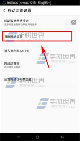 2)接著點選【首選網絡類型】,你可以選擇【SIM卡1】或者【SIM卡2】來設置,當然,是根據你上網的卡來設置的,在彈出框內選擇【4G/3G/2G】一欄即可。(如下圖)
