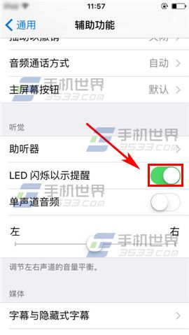 2)接著點擊【輔助功能】,打開【LED閃爍以示提醒】右邊滑塊即可。(如下圖)