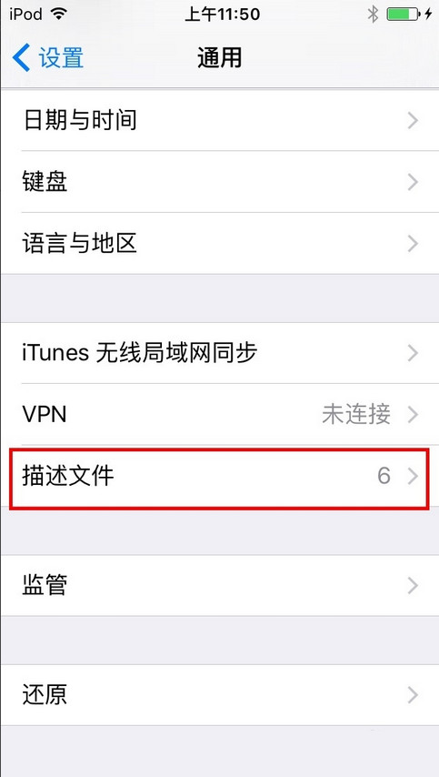 依次打開:設置 》通用 》描述文件