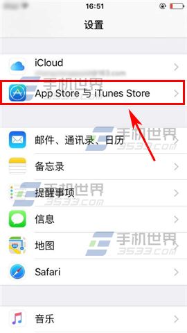 在iPhone6sPlus的設置界面點選【App Store與iTunes Store】進入,然後關閉【使用蜂窩移動數據】右邊滑塊即可。(如下圖)