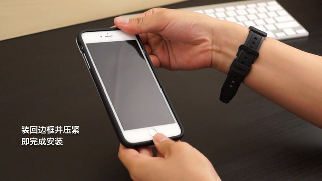 拆卸時,同樣從邊框左上的開啟口開始,用手指向兩邊劃開,取下邊框。