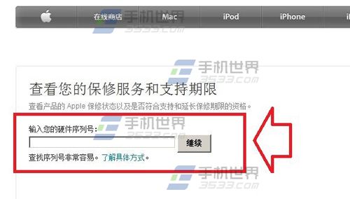 4、之後我們再輸入自己的iPhone6序列號,然後點擊後邊的“繼續”即可查詢,如界面圖所示。
