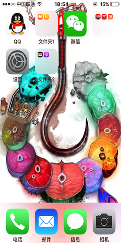 打開文件夾 2 後,點擊文件夾 2 裡面你要隱藏的 App 圖標一直按,抖動為止。然後把要隱藏的 App 拖到桌面外屏幕最底下(操作這一步的過程中,一定要一直按住 App 的圖標,不要放手!)。然後要隱藏的 App 圖標就消失了,到此隱藏 App 完畢。