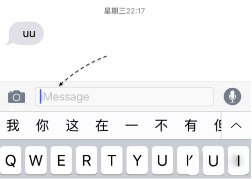 2、如下圖所示,在當前這個短信輸入框中顯示有 iMessage 字樣 ,說明當前是用網絡來發送的信息的。