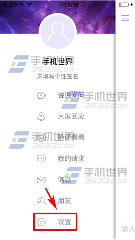 1)打開小靈靈進入應用後點擊左上角【三】,接著點擊【設置】。(如下圖)