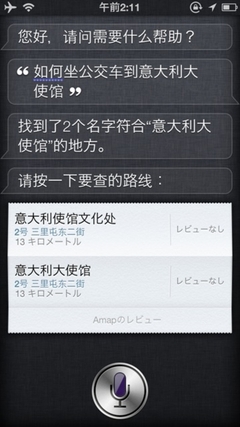 答案是肯定的,因為Apple Maps有一個致命弱點:公交查詢不能,她甚至自己的弱點,所以在你要查詢公交線路的時候,Apple Maps就會求助於其它支持公交查詢的第三方應用了。所以在我們詢問Siri的時候,要這麼問: