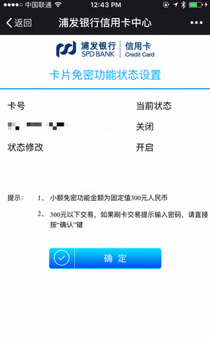 三、浦發信用卡小額免密開通方法