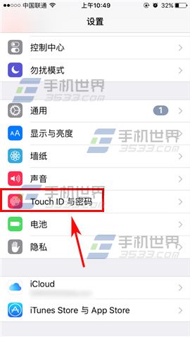 1)首先我們先打開【設置】,然後找到【Touch ID與密碼】。(如下圖)