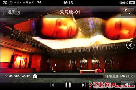 視頻播放菜單: PPS可以進行進度調節、全屏選擇以及集數選擇(點擊屏幕右端的三角按鈕進行集數選擇),優酷除了全屏選擇按鈕沒有之外,其它功能也都具備。