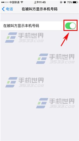 2)打開後我們再點擊【在被叫方顯示本機號碼】,最後再將其右邊的橢圓往右拉打開即可。(如下圖)