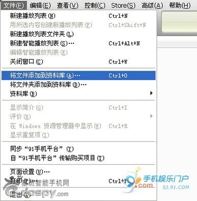 2. 點擊iTunes菜單中的“文件”選項,在下拉菜單中,可選擇“將文件添加到資料庫”及“將文件夾添加到資料庫”兩個選項。