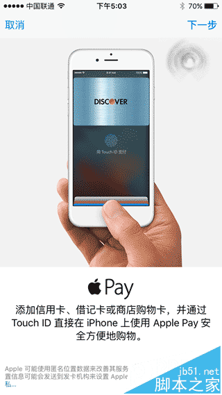 ▼然後進入到Apple Pay的介紹頁,點右上方的“下一步”繼續;