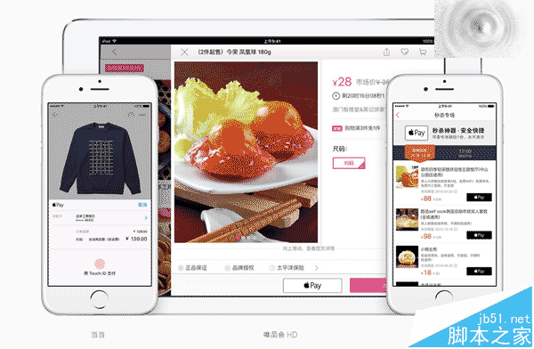 這些設備對Apple Pay的支持情況可是不一樣的,因為在POS機上刷卡需要用NFC,所以只有上面的iPhone以及配對的Apple Watch才能用來在線下實體店支付,iPad只能用來在應用中進行支付,比如在唯品會、當當、大眾點評中付款。