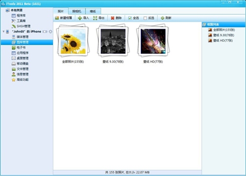 6.照片管理,越獄後可以直接在此管理各種照片的導入導出和刪除。