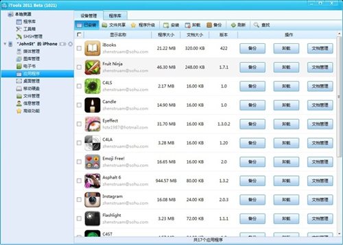 8.應用程序,相對於國內用戶的使用習慣,iTools的程序管理更貼心,讓程序實現多人共享。