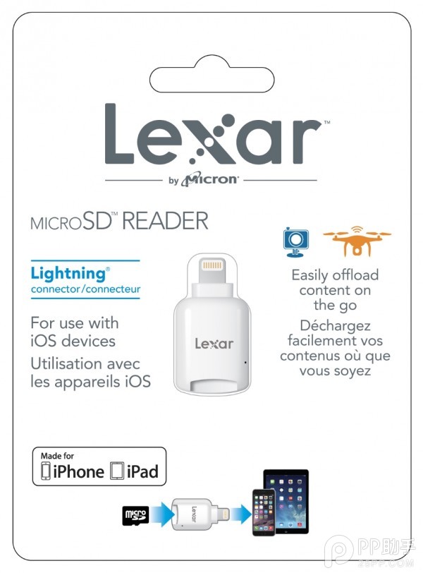 第三方雲儲存和WiFi無線傳輸也許是合理的解決方案,但也存在傳輸緩慢的短板,更不要說一些老款數碼相機存在不支持WiFi的情況。而現在Lexar帶來了更方便的解決方案,帶Lightning端口的新款MicroSD卡讀卡器。