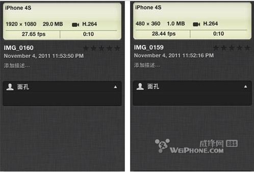 用這種辦法拍出來的視頻分辨率是480x360,文件大小只有iPhone4S默認高清視頻的約1/30,如下載圖所示,同為10秒鐘的視頻,iPhone4S默認的高清攝像模式拍出來的是29M,而用這種方法拍出來的視頻文件只有1M大小,而視頻的幀率基本一樣