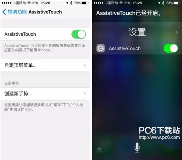 如果你習慣使用小圓點的話,連下滑調出通知中心,上滑調出控制中心,長按Home鍵召喚Siri也可以在小圓點裡點擊完成。