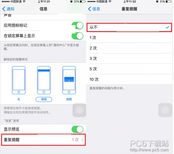 想要關閉iPhone信息重復提醒的朋友,快去試試吧,雖然是一個小功能,但很實用。尤其是對一些手機不離手的朋友,一般短信提醒一聲就知道了,無需重復提醒。