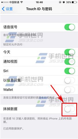 2)接著下拉找到【抹掉數據】將其打開,最後再點擊【啟用】就可以了。(如下圖)