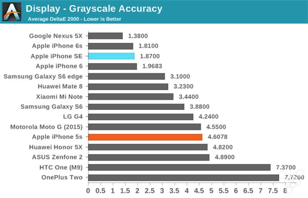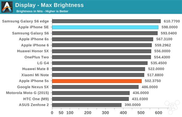 iPhone SE的屏幕是它的賣點之一,但這個賣點並不是因為屏幕規格。iPhone SE取代了iPhone 5s的位置,它同樣是4英寸屏幕,分辨率為1136x640。至於iPhone SE和iPhone 5s的屏幕面板是否完全一樣,我們看過AnandTech的測試就會知道。