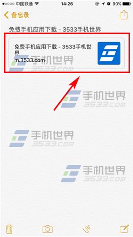 蘋果iPhoneSE備忘錄怎麼收藏網絡鏈接?相信很多人都知道怎樣在備忘錄建立文字防止忘記的時候方便查看,那麼當我們看到一個網站或者網頁很好看或者說很實用的話又該怎麼收藏至備忘錄呢,就好像3533手機世界這個網站一樣,我們該如何添加其網絡鏈接至備忘錄呢,下面小編就來教你們蘋果iPhoneSE備忘錄收藏網絡鏈接教程吧!