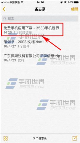 3)接著我們便可以打開【備忘錄】,找到之前的收藏的鏈接,然後點擊即可打開查看了。(如下圖)