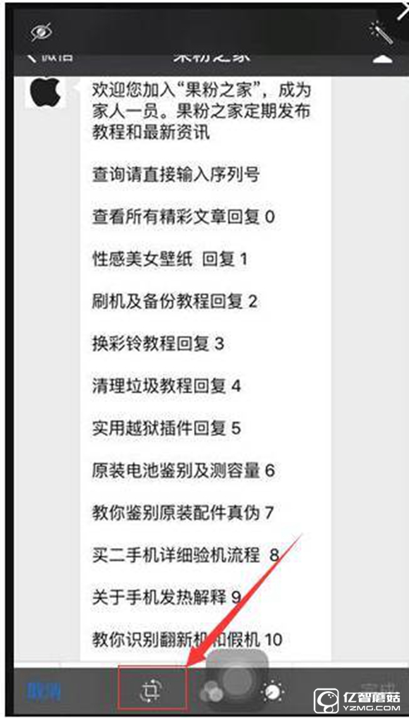 2、進入編輯模式後,點擊左下角的“裁切”圖標