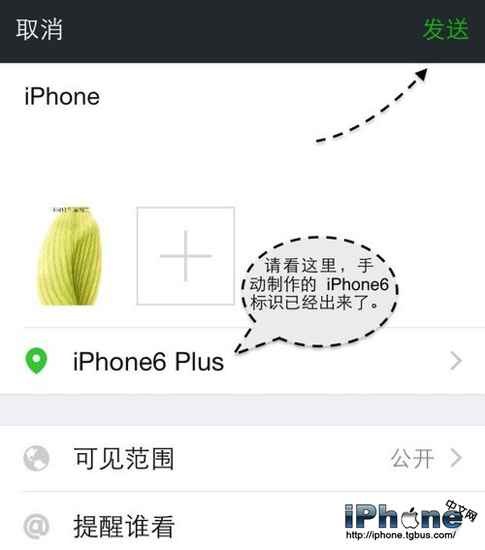 如下圖所示,當小伙伴們看到你發布了帶有 iPhone6 的標識,他們很快就會過來圍觀了。