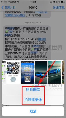 2)打開以上設置後我們再打開【信息】,然後選擇你要發送的聯系人信息後點擊左下角的【相機】,最後即可根據自己需要選擇圖片就可以了。(如下圖)