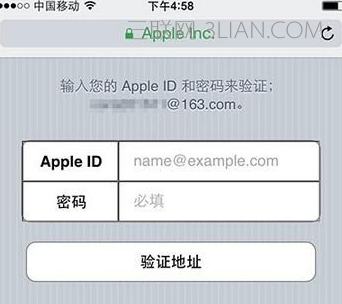 12、輸入注冊的Apple ID和密碼,點擊驗證地址,完成激活操作。
