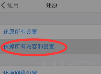 除此之外,我們在手機上找到還原一項,並在它選項下點擊“抹掉所有內容與設置”,也可修復此問題,不過這樣操作會讓我們手機上的數據丟失,所以小編不太推薦這種方法。
