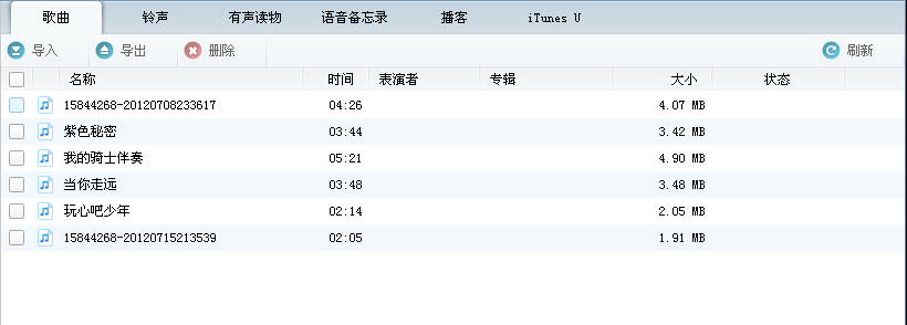 導出將你選定的歌曲導出,也就是備份了你的歌曲。