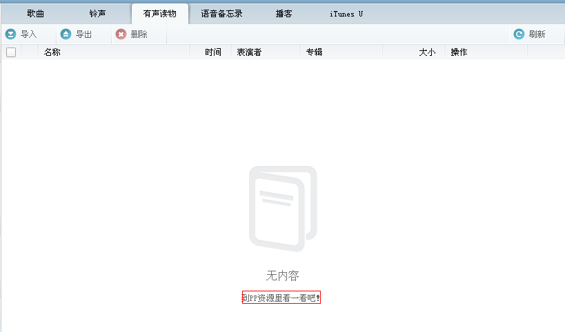 有聲讀物、有聲讀物、語音備忘錄、博客、iTunes U如果你手機沒有此類文件你可以選擇在PP資源裡面尋找。
