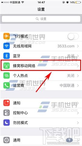 1)首先我們先打開【設置】,然後找到【蜂窩移動網絡】,打開後我們再下拉點擊【還原統計數據】。(如下圖)