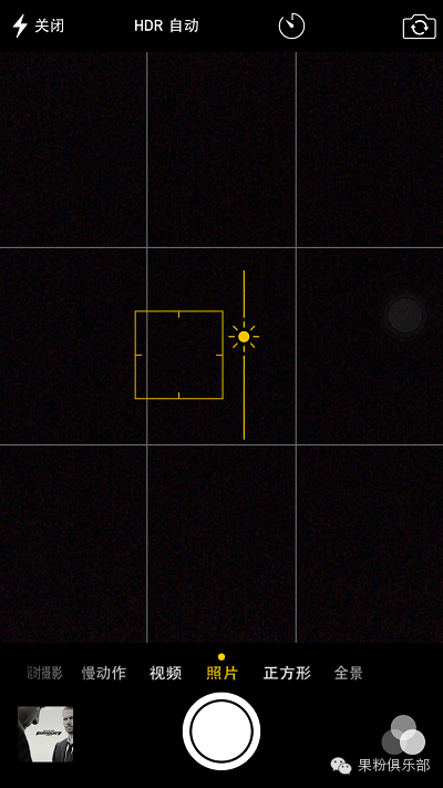 當你在手動對焦時,對焦框的右邊有一個太陽的圖標,這是從iOS8開始新增的一個【手動調節曝光度】的功能,向上/向下拖動太陽圖標,對應的相機的曝光度會相應的增大/減小。