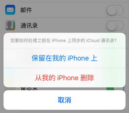 3.可能在關閉iCloud中通訊錄選項時,誤點了“從我的iPhone刪除”;