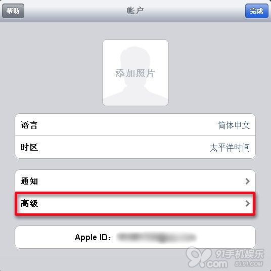3.出現帳戶彈窗,依次點擊【高級】→【重設照片流】