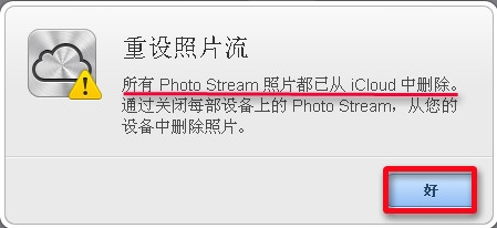 6.出現提示彈窗,顯示所有照片流上的照片都已經從iCloud中刪除