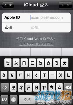 第七步,想通過iCloud的備份來恢復的用戶,則需要輸入你的APPLE ID帳號與密碼才能繼續執行。