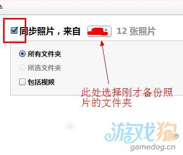 3.選擇【照片】選項,然後勾選上【同步照片】,選擇剛才你所備份的照片文件夾位置即可。