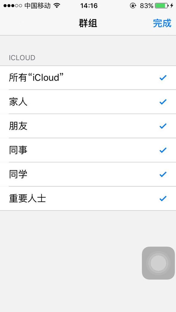 之後選擇“所有icloud“就可以了。(注意:此方法僅對開通icloud功能並打開通訊錄同步的用戶適用)
