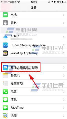 1)首先我們先打開【設置】,然後找到【郵件、通訊錄、日歷】並點擊。(如下圖)