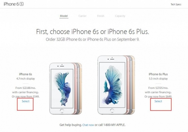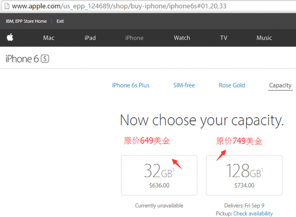 2.頁面改版了啊 進來先選擇6S $549 (RMB3660)或者 6S plus $649(RMB4326)