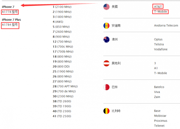 官網iPhone 7與iPhone 7 Plus頻段說明 http://www.apple.com/iphone/LTE/