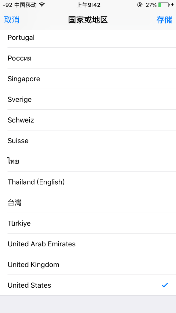 1.App Store>Apple Store>賬戶>賬戶設置>國家或地區>UnitedStates>存儲