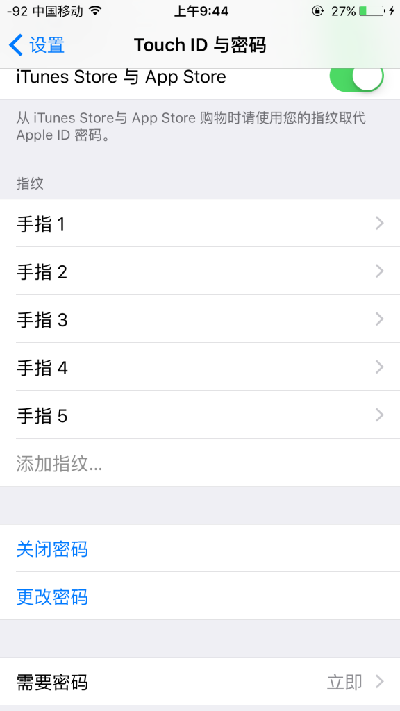 2.設置>Touch ID與密碼>關閉密碼