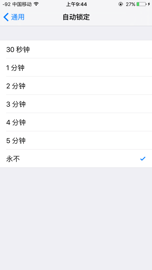 3.設置>通用>自動鎖定>永不