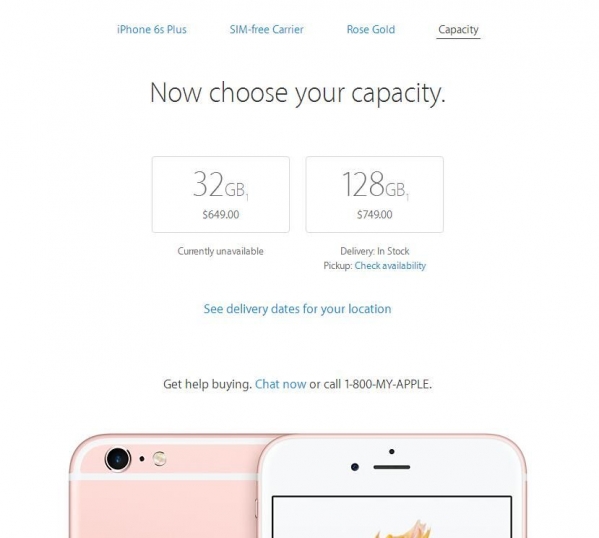 5.最後選內存 6SP 有 32G 和128G($749 RMB4993) 兩個選項