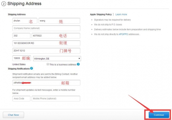 10.填寫地址,姓名填寫信用卡上的真實姓名,其他的就按轉運公司填寫,要注意的是首先是要在免稅州 ,其次是看轉運公司能不能走手機,現在比較保險的方式就是轉運到香港 然後自提。當然如果離香港遠的,那就要走郵政線海關抽檢,然後就看人品了